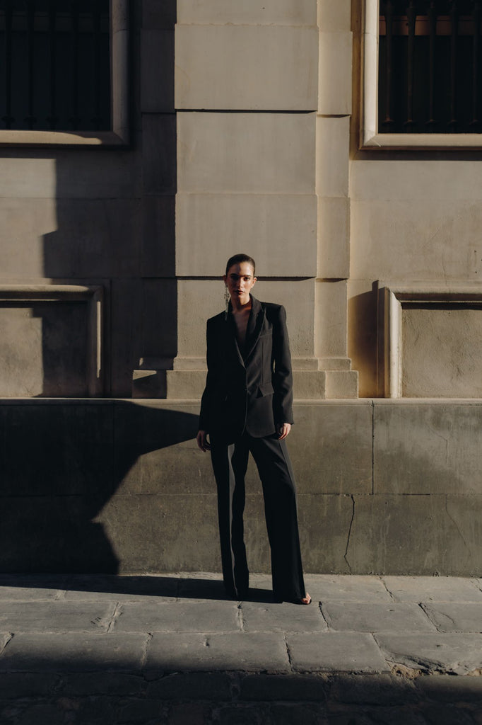 Blazer entallada lisa dos botones con bolsillo. Cierre frontal cruzado con botones. Ideal para ir elegante al trabajo o cómoda a cualquier evento.