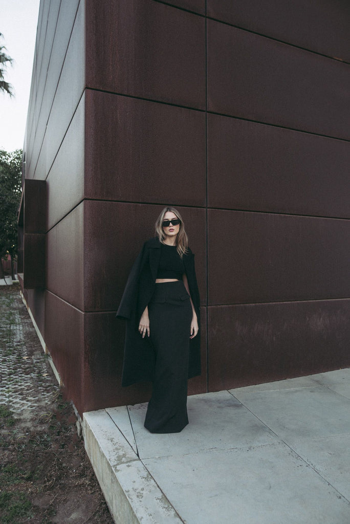 Falda con apertura trasera y color liso. Una pieza diseñada para vestir elegante y cómoda para cualquier evento o acto social.