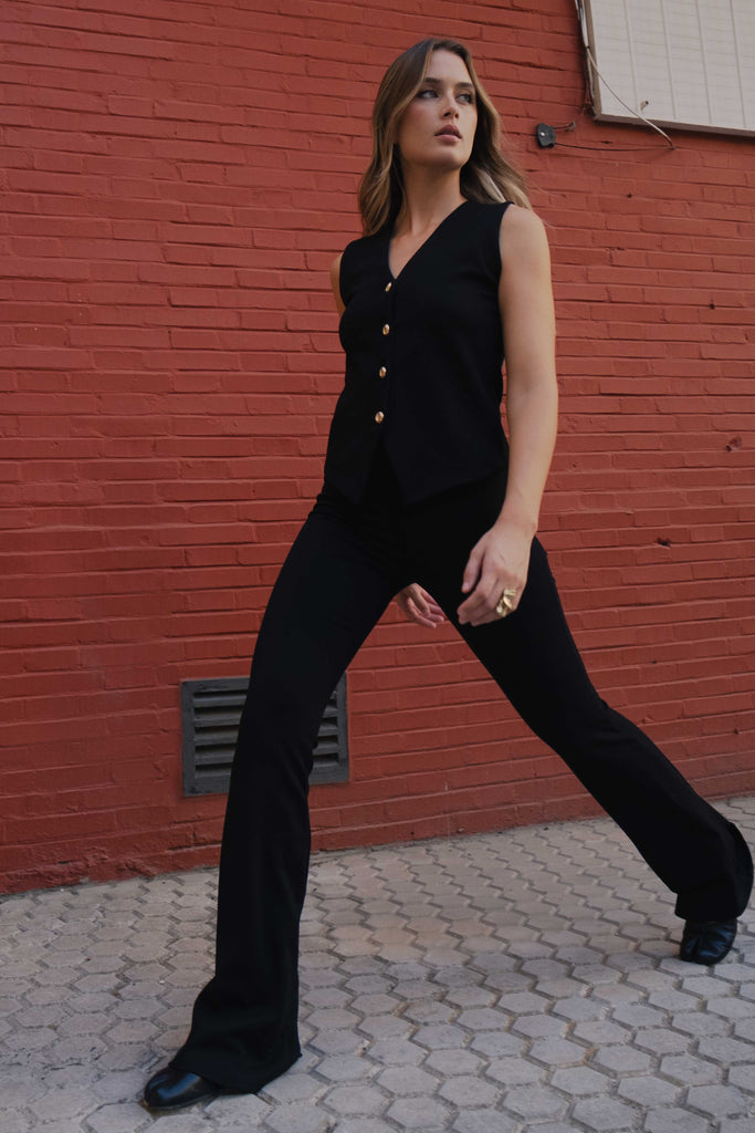 Top chaleco de escote pico y manga sisa. Cierre frontal con botones. Ideal para ir cómoda y elegante